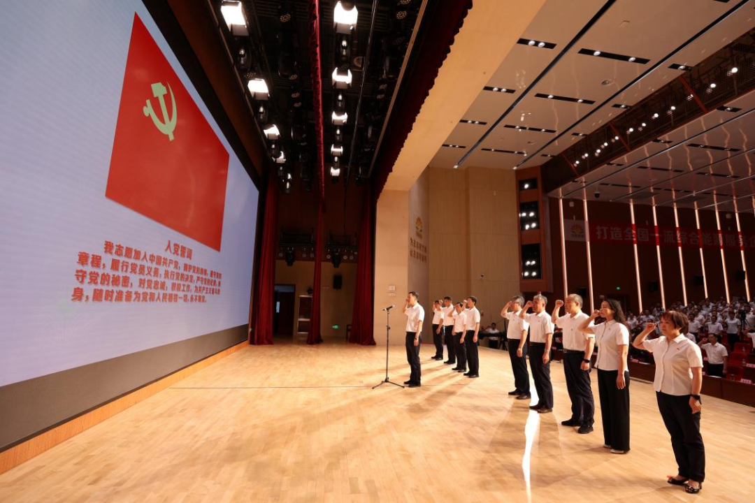 會(huì)議伊始,由集團(tuán)黨委書(shū)記、董事長(zhǎng)潘世英領(lǐng)誓,新發(fā)展黨員進(jìn)行入黨宣誓,全體黨員干部重溫入黨誓詞。
