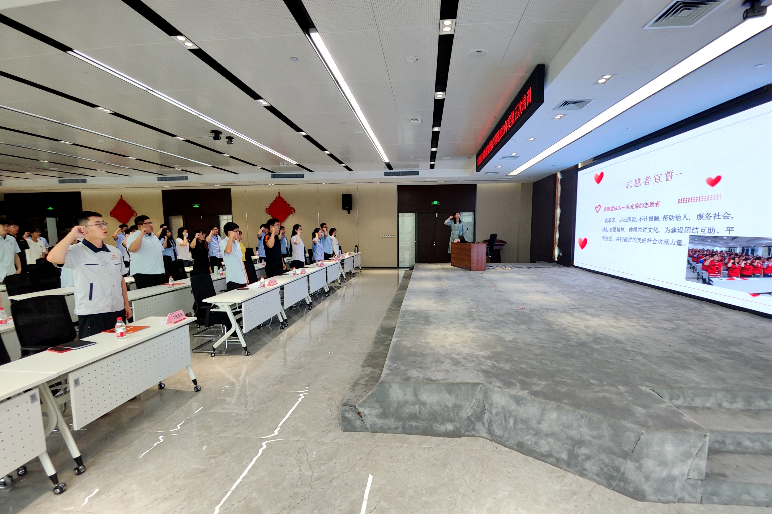 “我承諾:盡己所能,不計報酬,幫助他人,服務社會,踐行志愿精神,傳播先進文化,為建設團結互助、平等友愛、共同前進的美好社會貢獻力量。”在袁雪老師的帶領下,能源青年們重溫志愿者誓詞,莊嚴宣誓,展現(xiàn)出能源青年蓬勃向上的精神面貌,以奉獻擔當詮釋黨的助手和后備軍的政治本色。