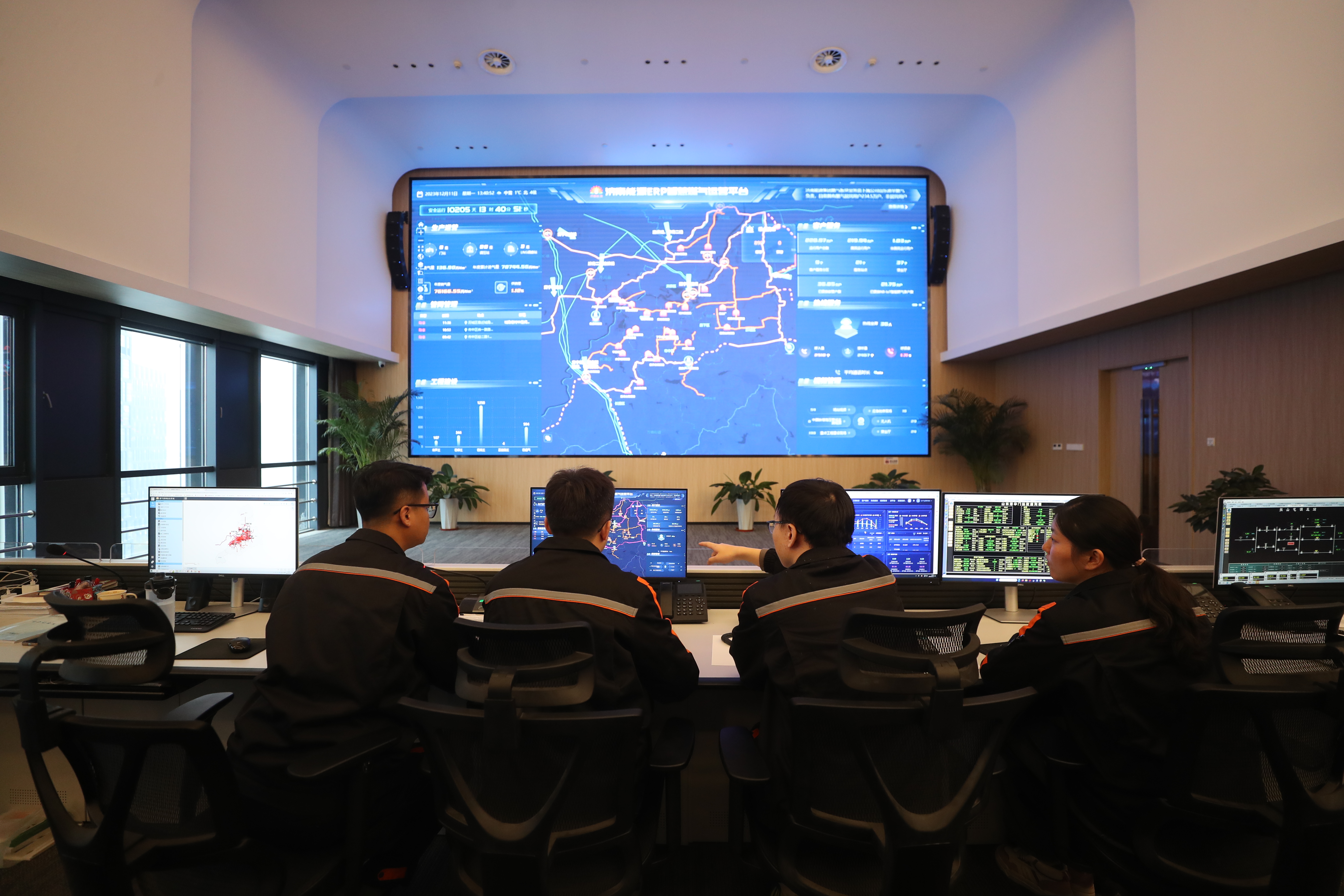 目前,能源集團(tuán)已啟動自有大中型熱源34處,77臺鍋爐穩(wěn)定超低運(yùn)行,35條熱網(wǎng)動態(tài)微調(diào)、平穩(wěn)運(yùn)行,總負(fù)荷已較前期增加52%,達(dá)到6100MW。全網(wǎng)平均供水溫度已陸續(xù)提升15℃,章丘、石橫長輸管網(wǎng)水網(wǎng)已近100℃,能源“智慧大腦”將隨雨雪天氣及氣溫下降適時提升供水溫度,以滿足供熱需求。制定“壓非保民”方案,必要時降低公建耗熱量,全力保障居民供熱。