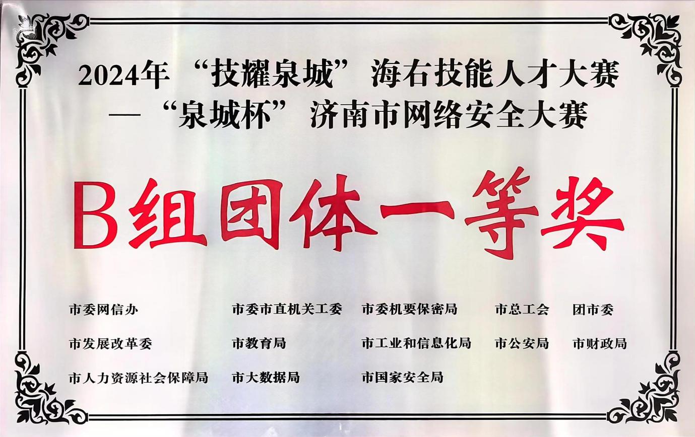 7月11日,2024年“技耀泉城”海右技能人才大賽—“泉城杯”濟(jì)南市網(wǎng)絡(luò)安全大賽成功落下帷幕。來自全市黨政機(jī)關(guān)、企事業(yè)單位103支隊(duì)伍、302名選手參加本次大賽。經(jīng)過激烈角逐,濟(jì)南能源集團(tuán)隊(duì)獲B組團(tuán)體一等獎,兩名參賽選手獲得個人一等獎、個人二等獎獎項(xiàng)。
