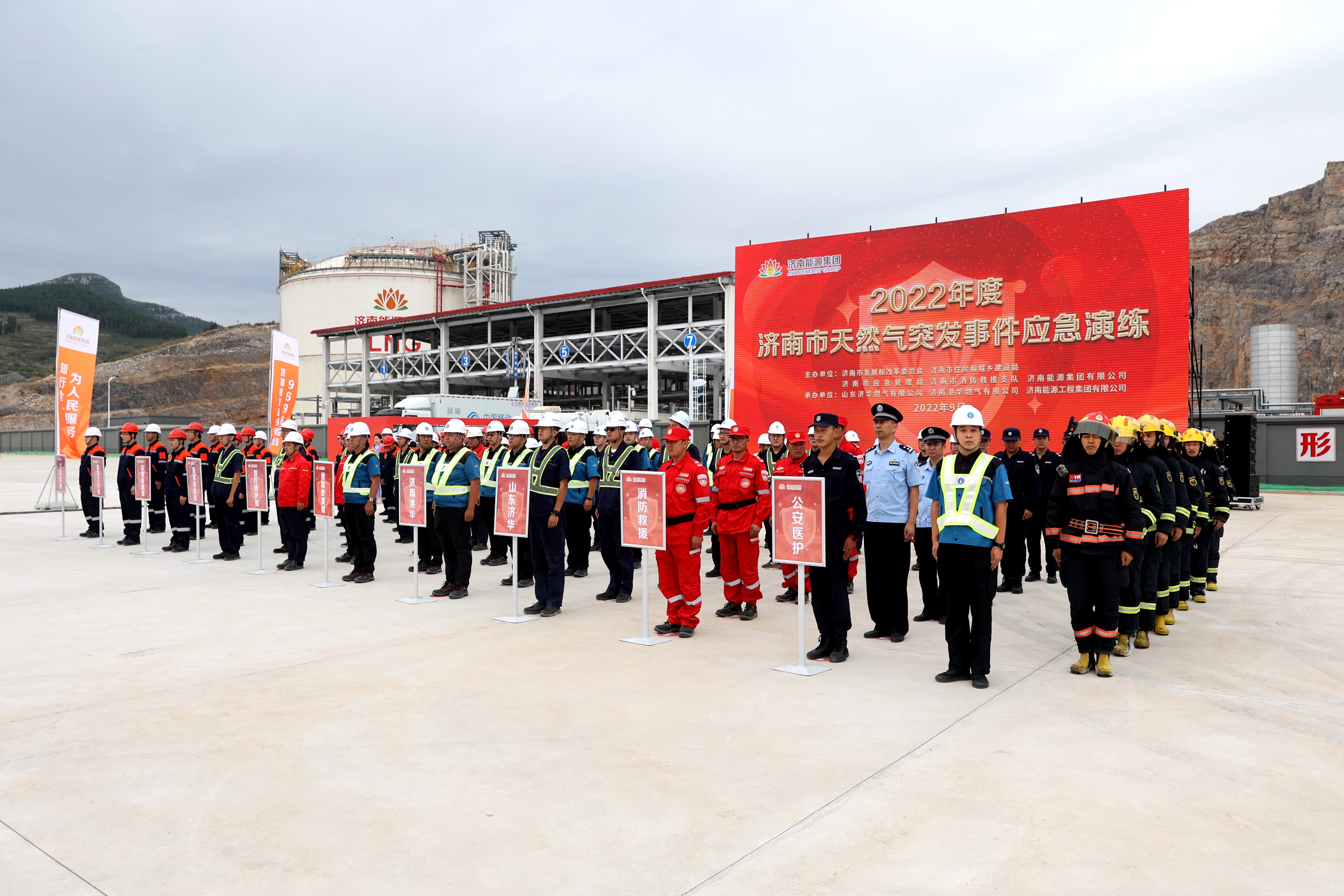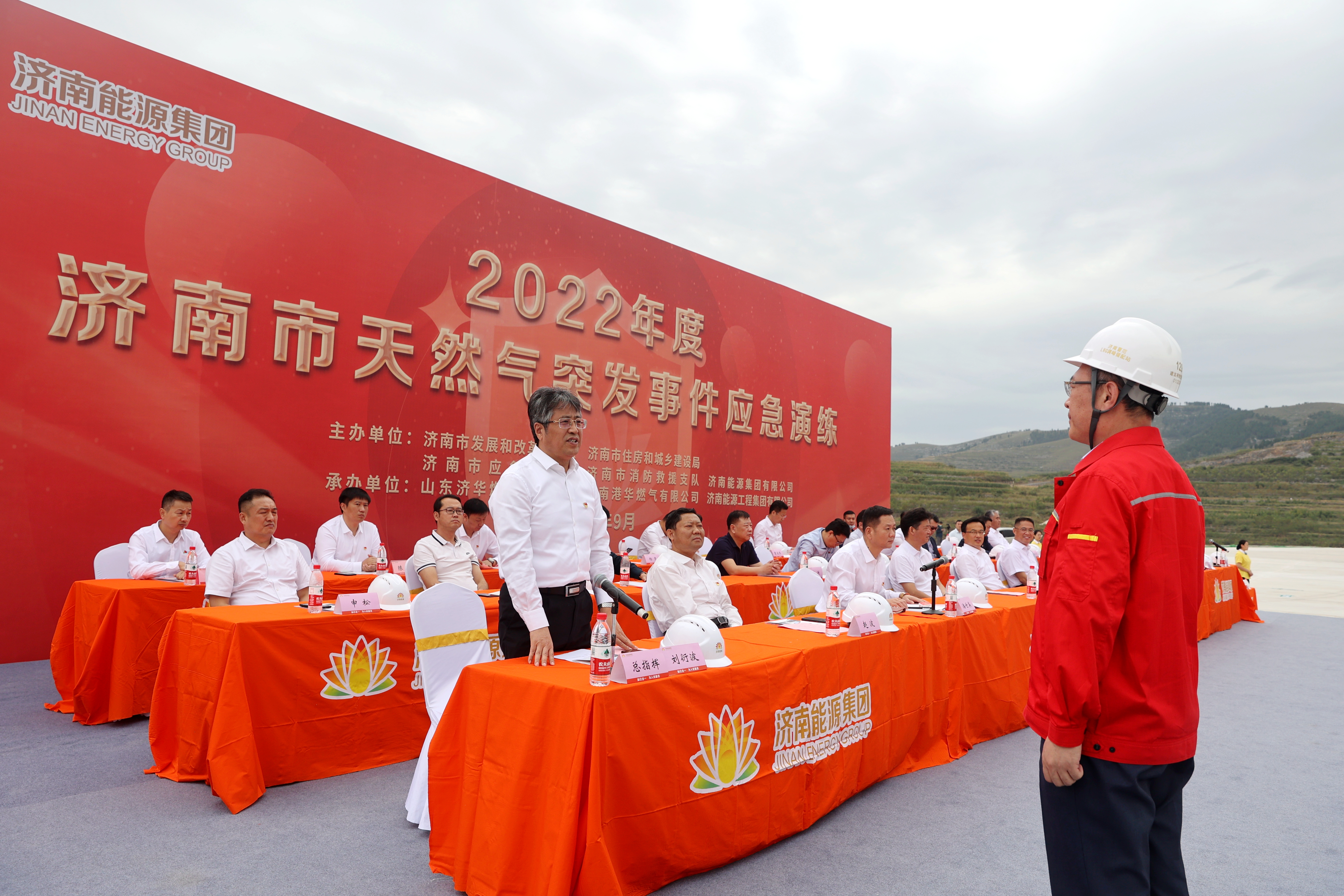 安全工作是一場(chǎng)“只有更好、沒(méi)有最好”的長(zhǎng)久征程,能源安全更是其中重中之重。為提升濟(jì)南市LNG調(diào)峰儲(chǔ)配基地供氣保障和突發(fā)事件應(yīng)急處置能力,全面做好今冬燃?xì)獗9└黜?xiàng)工作,用實(shí)際行動(dòng)迎接黨的二十大勝利召開(kāi),9月20日上午,濟(jì)南能源集團(tuán)組織開(kāi)展天然氣突發(fā)事件應(yīng)急處置實(shí)戰(zhàn)演練。濟(jì)南市副市長(zhǎng)任慶虎,山東省能源局黨組成員、副局長(zhǎng)劉學(xué)軍等參加此次演練活動(dòng)。