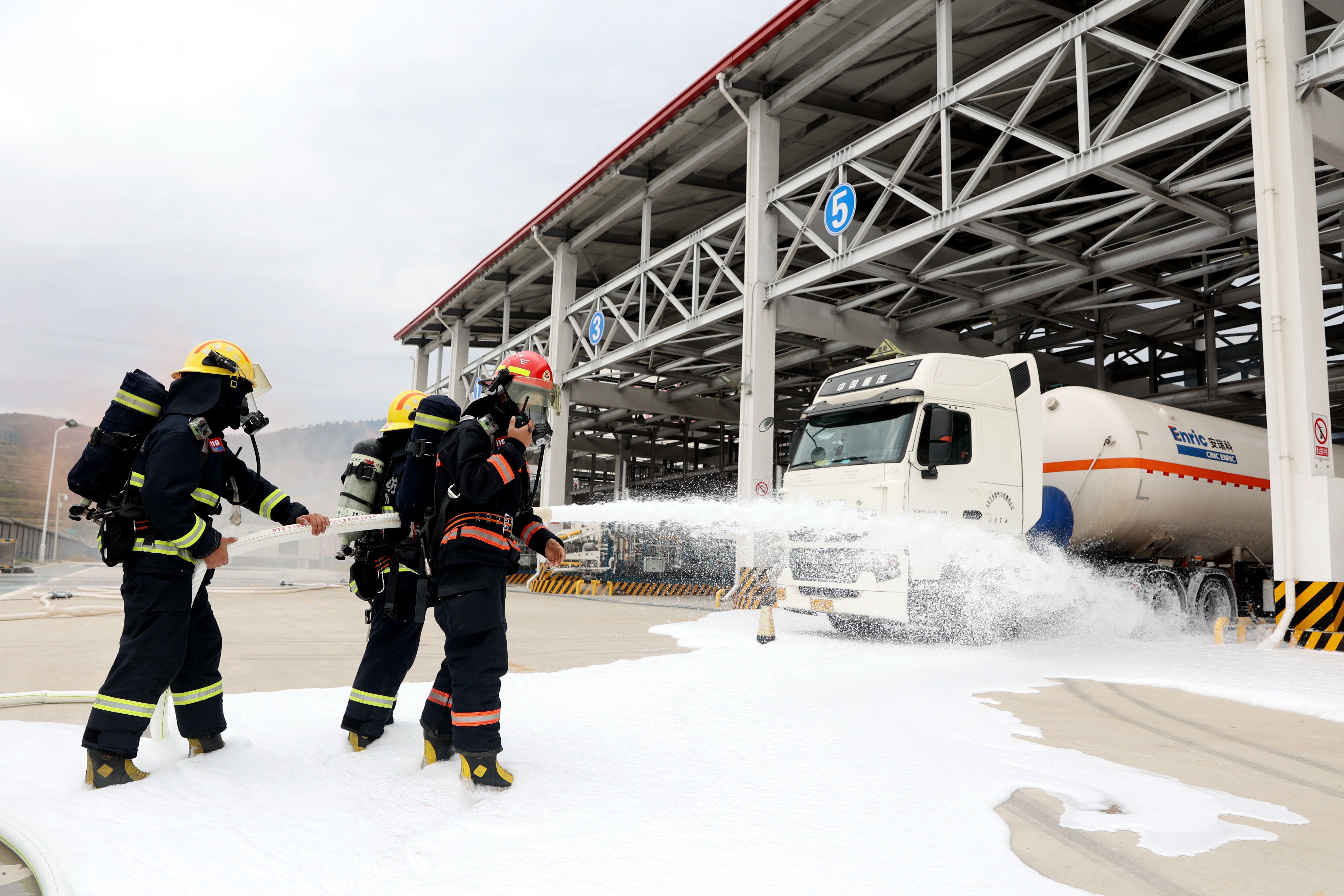近年來(lái),隨著濟(jì)南市綜合實(shí)力不斷躍升,天然氣消費(fèi)量正逐年增加,在全市能源發(fā)展“一盤棋”大局下,濟(jì)南市在應(yīng)急調(diào)峰方面面臨的機(jī)遇與挑戰(zhàn)前所未有。想要更好地實(shí)現(xiàn)高質(zhì)量發(fā)展,就要為發(fā)展進(jìn)一步夯實(shí)“安全之基”、筑牢“安全底座”。本次演練設(shè)在全省最大的內(nèi)陸儲(chǔ)氣基地——濟(jì)南曹范LNG調(diào)峰儲(chǔ)配基地,模擬LNG罐車卸液過(guò)程中突然泄漏及周邊山體出現(xiàn)火情等場(chǎng)景下的應(yīng)急處置,旨在以演促練提升防范能力、以練備戰(zhàn)筑牢安全防線,真正做到防風(fēng)險(xiǎn)、除隱患、保安全、迎盛會(huì)。