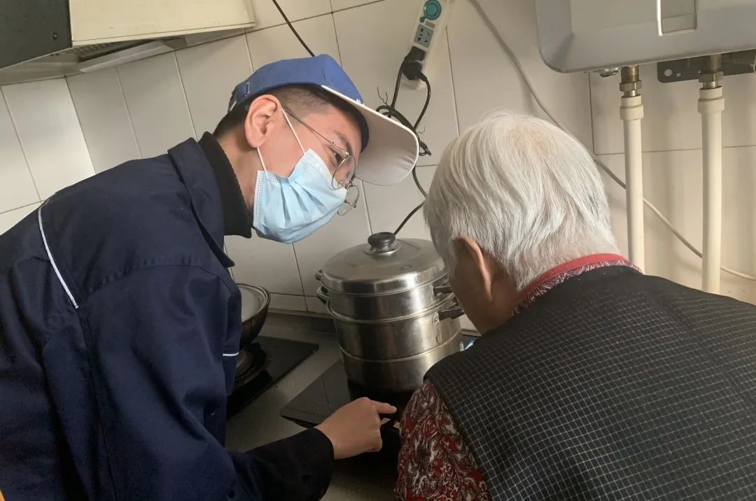 李浩冉回頭一看,是一位焦急愁悶的老人。經(jīng)詢問得知,這位老人居住在段店馨苑小區(qū),已經(jīng)82歲了。前幾天老人的孩子給她新買了一臺燃氣灶具,但是還不太會用。早上做早飯的時候,家里的爐具發(fā)出“嘀嘀嘀嘀”的聲音。老人有些擔心,所以出門尋求幫助,正想著給孩子打電話,看到了穿著濟華工作服的工作人員。李浩冉一邊讓老人安心,一邊對老人說:“奶奶,您別擔心,我送您回家,一并幫您檢查一下燃氣設施。”“太好了,終于碰見明白人了。”老奶奶高興地說。