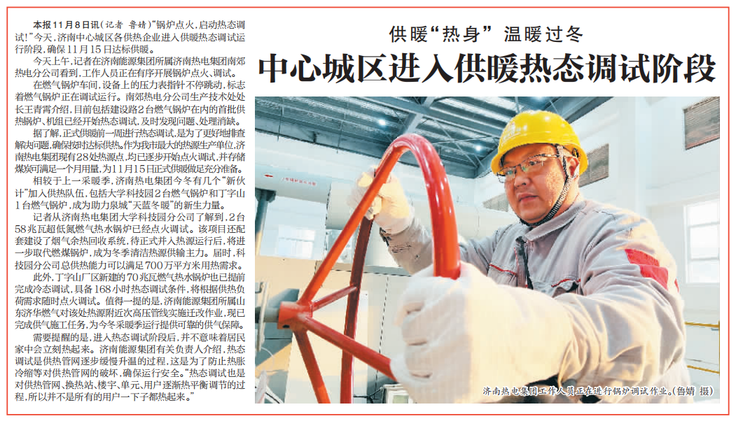 【濟南日報】供暖“熱身”溫暖過冬 中心城區(qū)進入供暖熱態(tài)調(diào)試階段