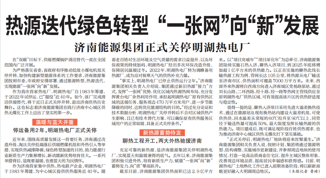 【濟南日報】熱源迭代綠色轉型 “一張網(wǎng)”向“新”發(fā)展