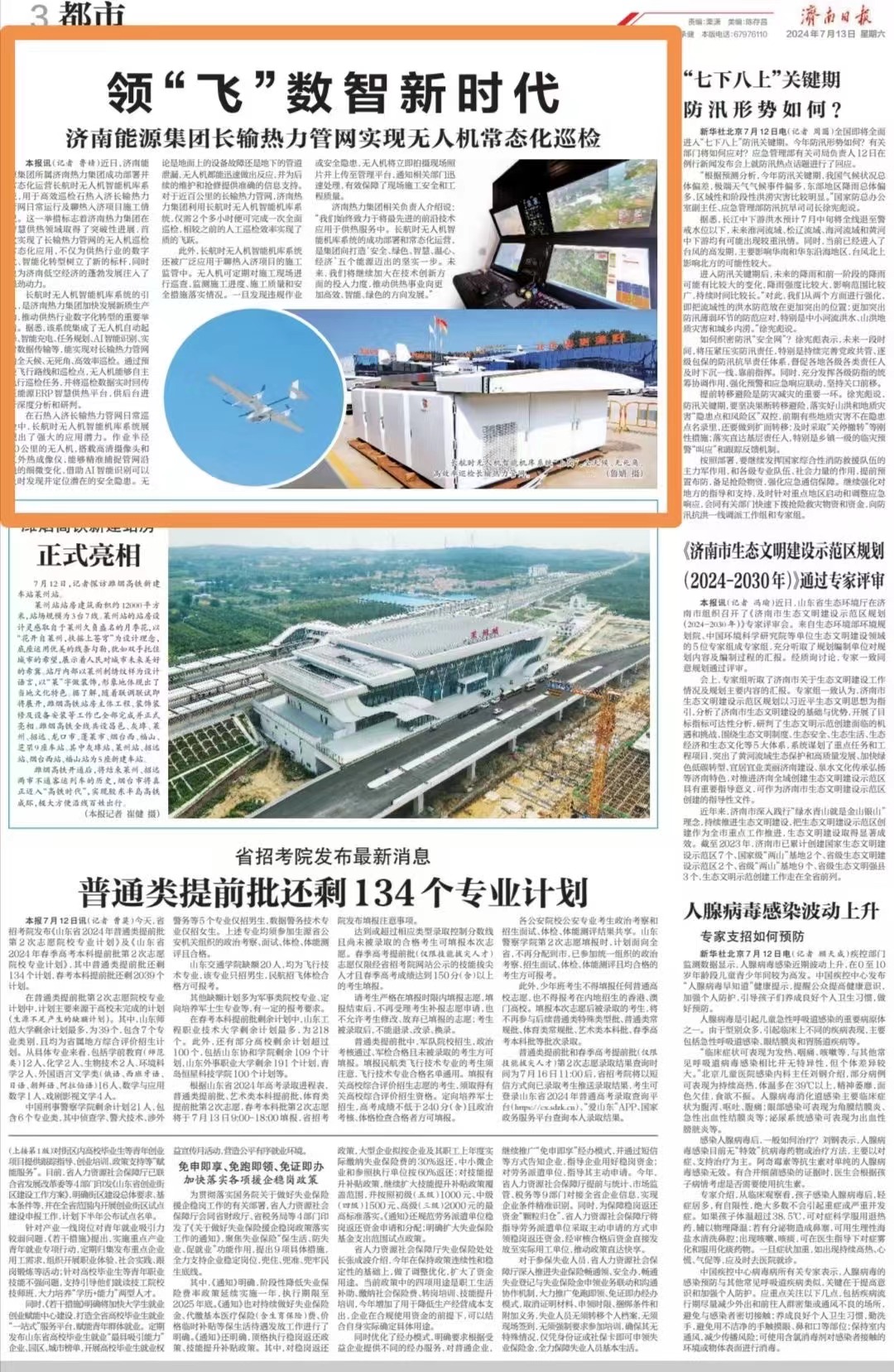 【濟(jì)南日?qǐng)?bào)】領(lǐng)“飛”數(shù)智新時(shí)代 濟(jì)南能源集團(tuán)長輸熱力管網(wǎng)實(shí)現(xiàn)無人機(jī)常態(tài)化巡檢