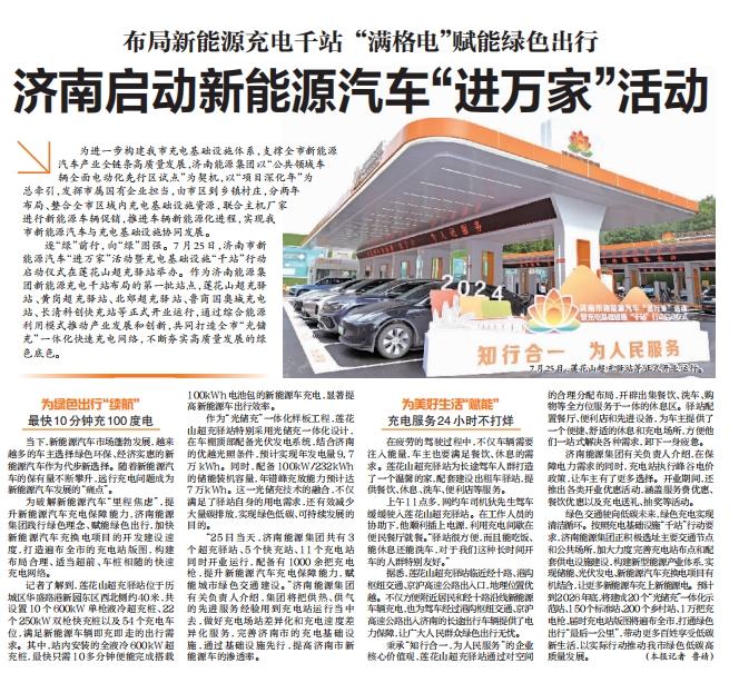 【濟南日報】布局新能源充電千站“滿格電”賦能綠色出行 濟南啟動新能源汽車“進萬家”活動