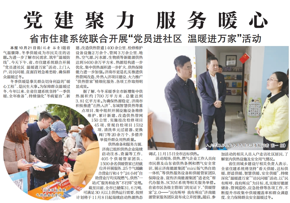 【濟南日報】黨建聚力 服務暖心 省市住建系統(tǒng)聯(lián)合開展“黨員進社區(qū) 溫暖進萬家”活動