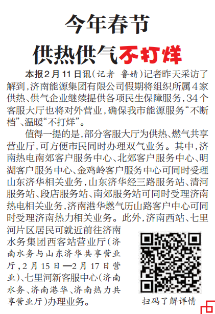 【濟(jì)南日報 都市2】今年春節(jié) 供熱供氣不打烊