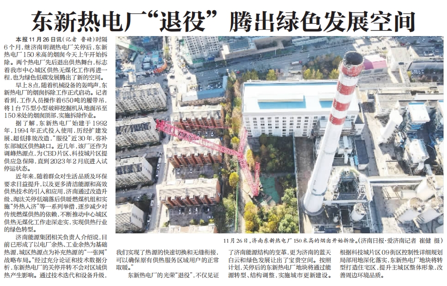 【濟南日報】東新熱電廠“退役”騰出綠色發(fā)展空間