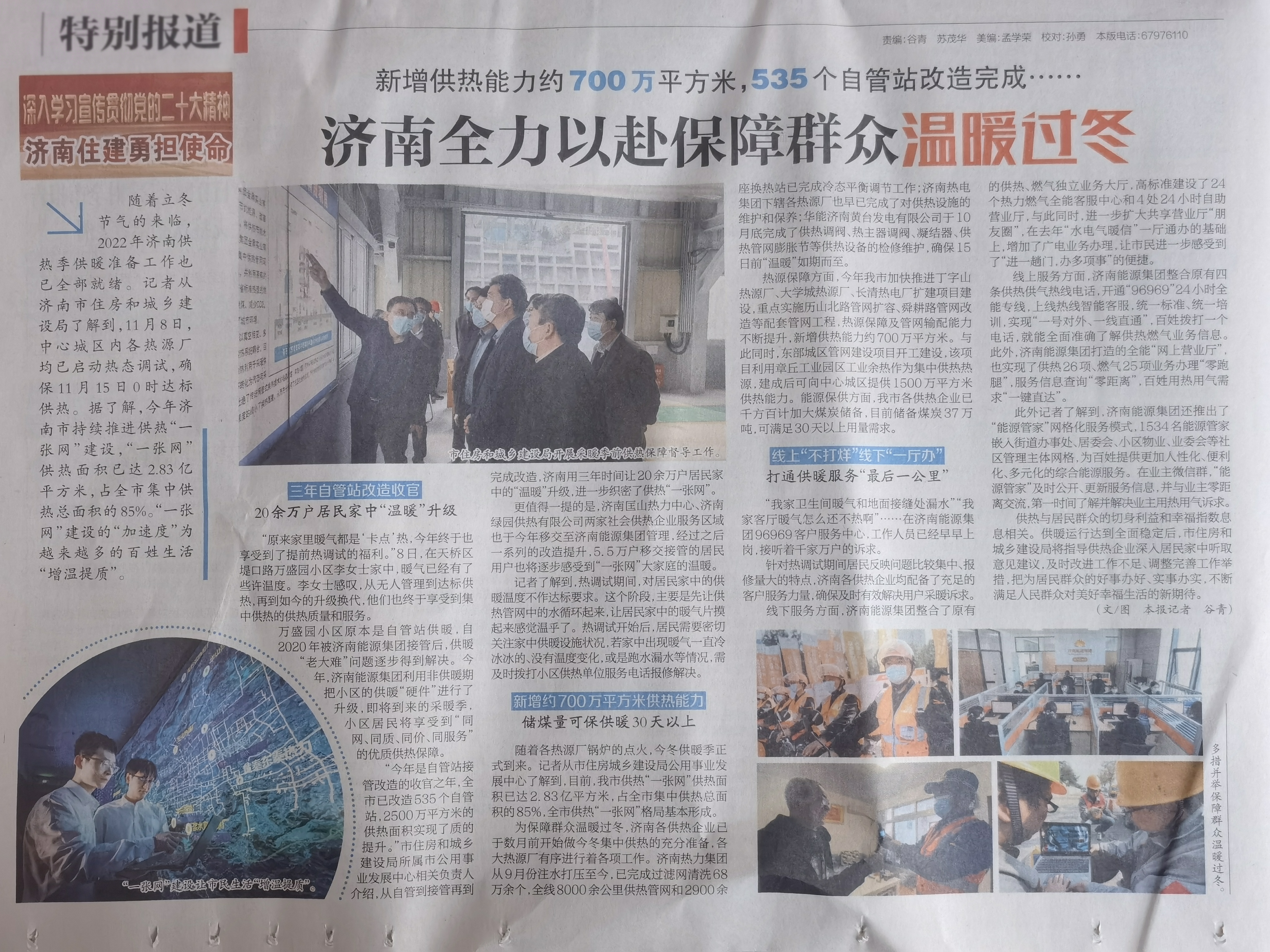 【濟南日報】新增供熱能力約700萬平方米,535個自管站改造完成······濟南全力以赴保障群眾溫暖過冬