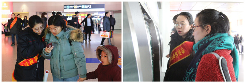志愿者為回家探親的劉女士取得車票時,她表示,“每年假期往返濟南西站,都能享受到志愿者們?yōu)槲覀兲峁┑馁N心服務(wù),真是很幸福!”